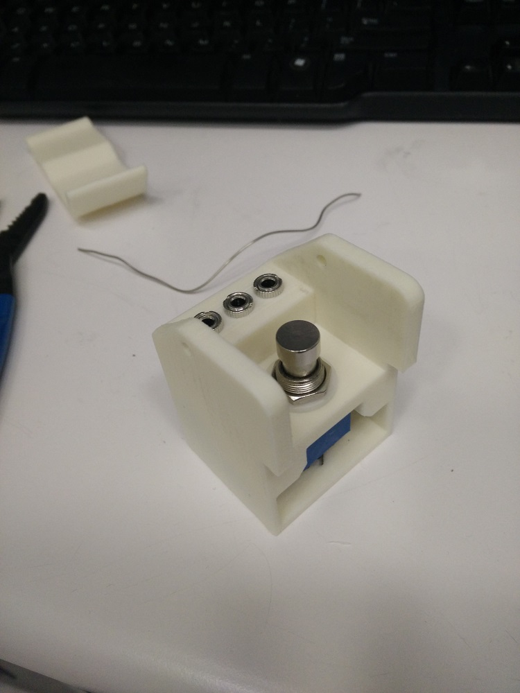 The first design was functional enough and got the job done, but I didn't think I properly designed for the 3PDT switch as a toggle. Also, I had an extra 3PDT switch and 2 audio jacks from my original order, so I ended up designing an alternative stand: