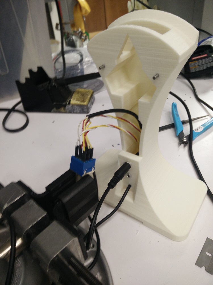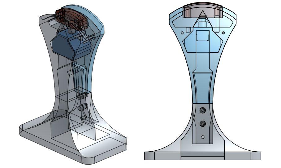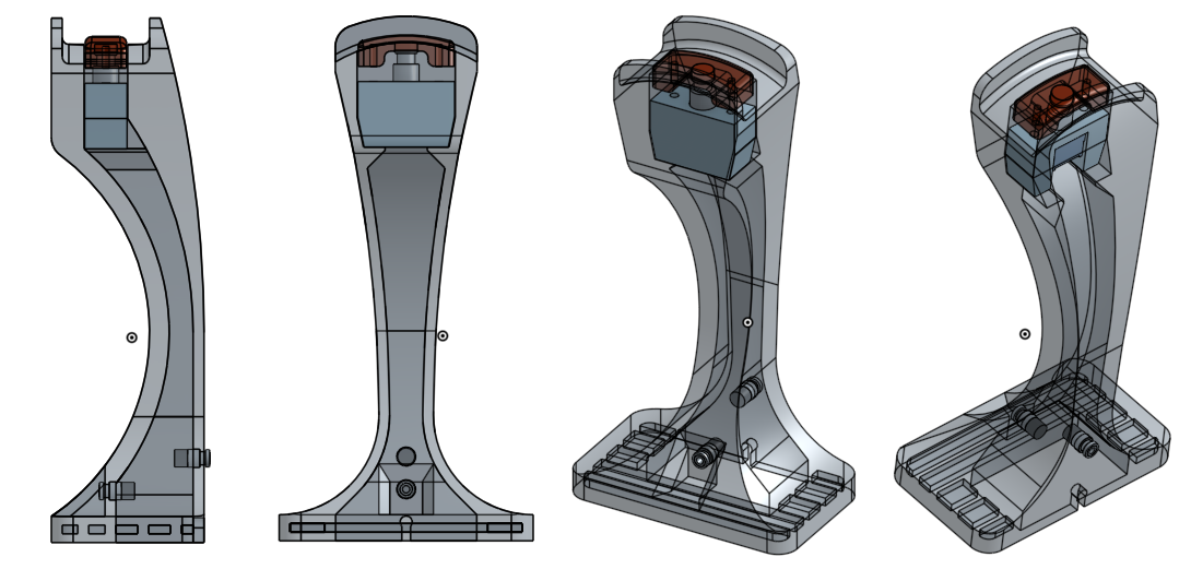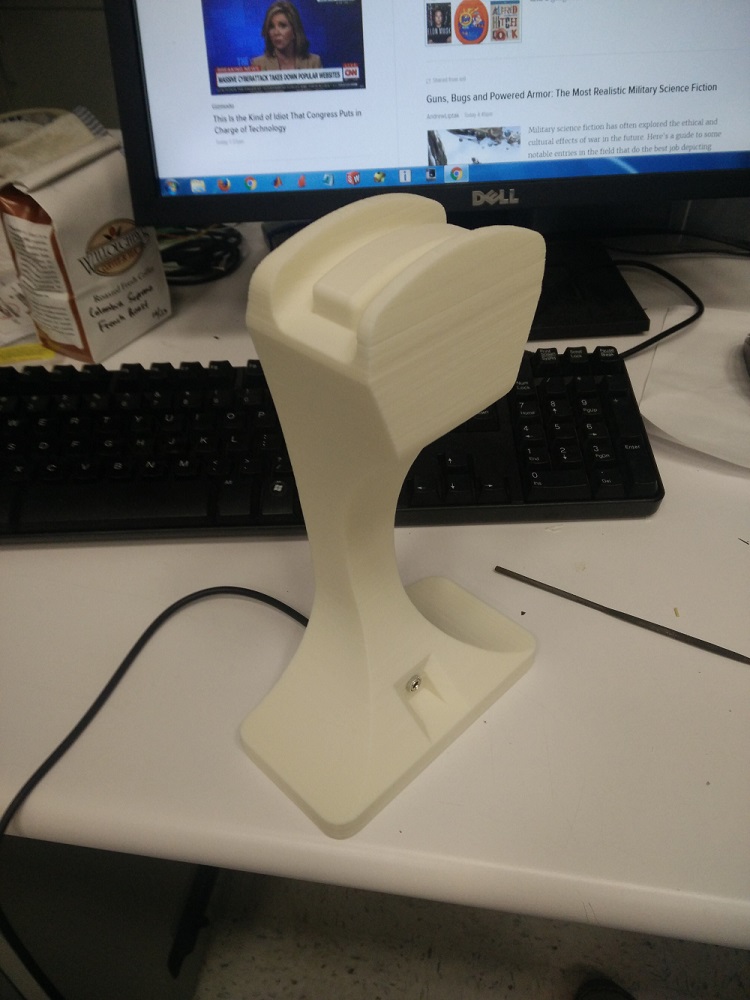 Like I said above, I also tried introducing some voids into the base to try and minimize warping. Warping was certainly less evident (though maybe that was just luck of the print), but this also reduced the base weight, making it easier to accidentally move the stand around. Still, not a functional deal-breaker, and the end result still worked like the last design above.