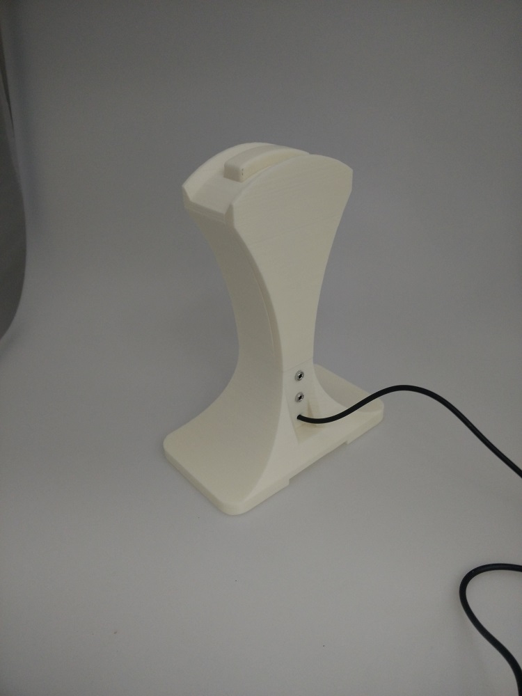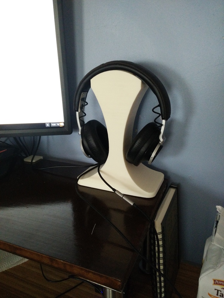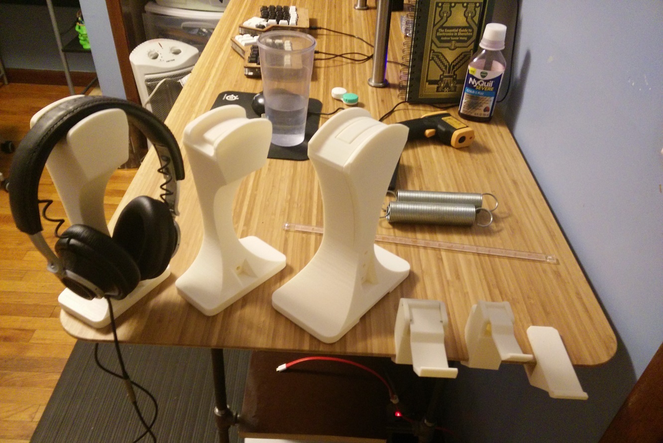 I'll probably stick with my current design for a while yet, but I'm definitely not entirely satisfied with it. I definitely like how the other printed stand and my first design acted more like a hook and let the headphones hang more freely. The toggling switch definitely works better in the second design, imo. It feels a bit more natural to just depress the top button whenever I want to swap outputs. Also, I'm thinking maybe the headphone audio jack should go on the front, with the source and speakers jack hidden in the real.