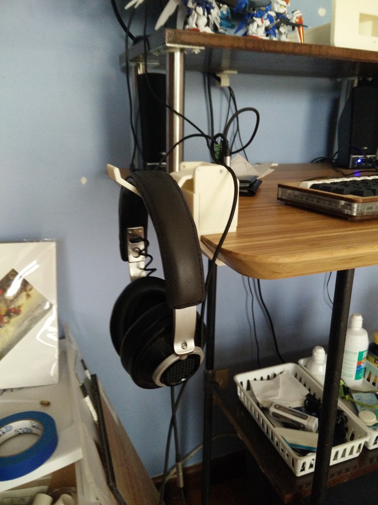 I already had a printed headphone hook attached to my desk, so my initial design started there:
