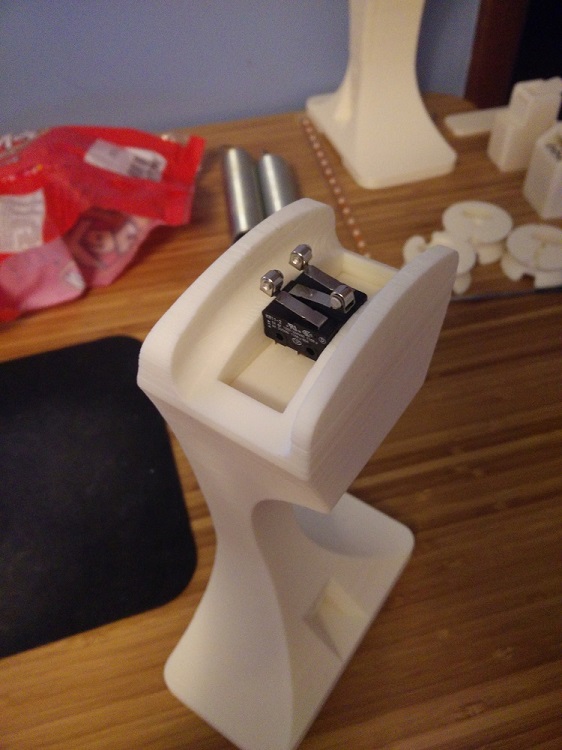 This makes me a little concerned, since all 3 limit switches have to be triggered for the design to work properly, but that arguably shouldn't be a problem with how the top cover is designed relative to the headphone band. In practice, the design ended up looking like: