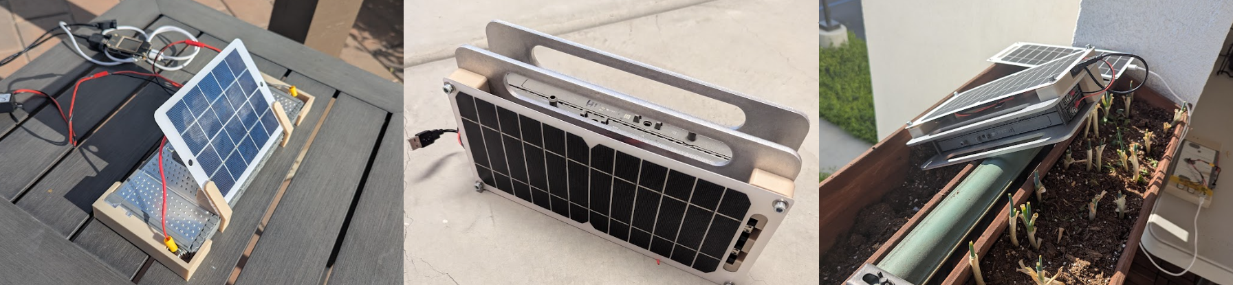 One neat thing about the sketchy NiMH USB-C charger boards is that I got to use equally sketchy Aliexpress 5V solar panels to charge them. I did this mostly because I happened to have some unused flexible panels that were approximately the size of the NiMH module. If you go down this route, make sure there's either a diode or a solar charger sitting between the panel and the charger board, otherwise the panel will actually discharge the battery at night (I had no clue this was a thing). I'm happy to report that this approach successfully stole free energy from the sun without initiating any thermal rapid-disassembly events.