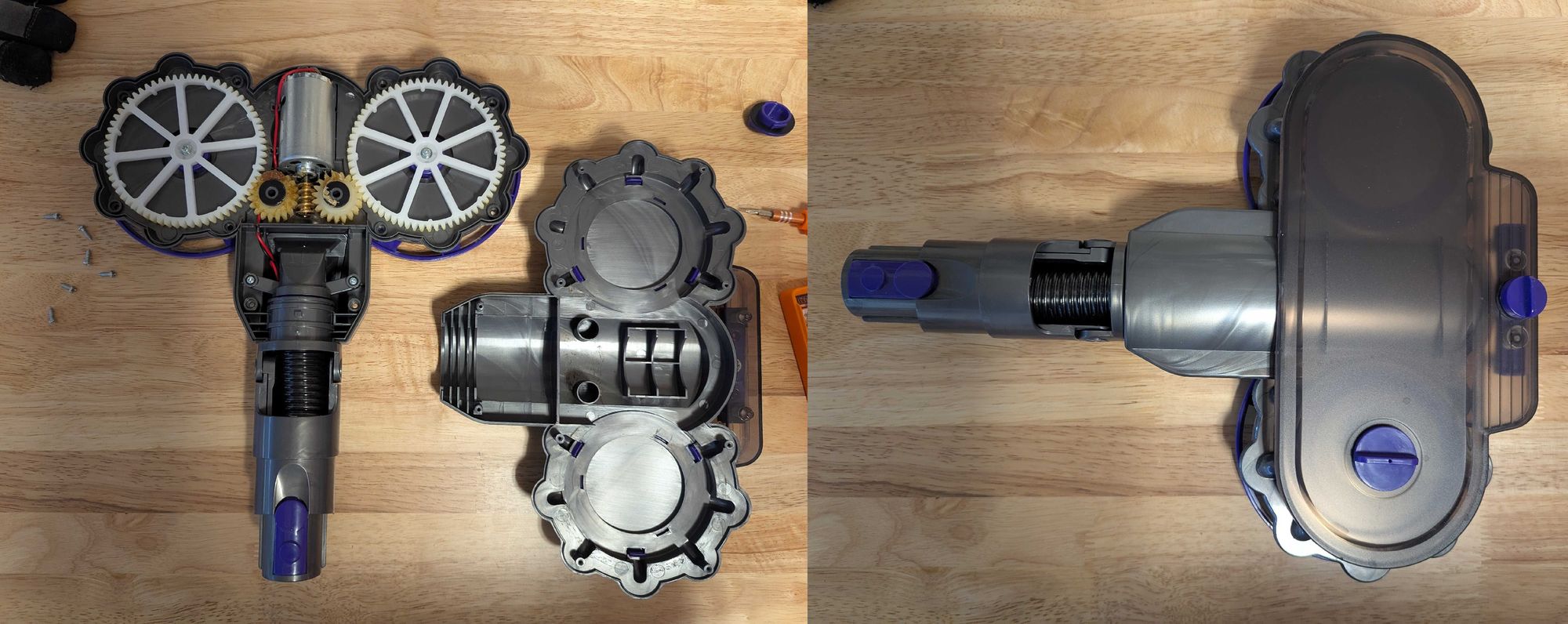 A year or so ago, I bought a wet mop attachment for a Dyson vacuum while perusing Aliexpress late one night, as one does. In typical "I-didn't-read-properly" fashion, it was incompatible with our Dyson at home, and I was stuck with this random module on my shelf. A little more time (unfortunately) freed up in my schedule in the past few weeks, so I'm back to taking random stuff apart. There's a series of posts I want to do at some point on the number of add-ons and simple electromechanical devices we use in our day-to-day that's basically just a motor-on-a-stick, and how minor variations on that topic and produce so many different uses. I was a little surprised at some of the design choices made in this relatively simple attachment.